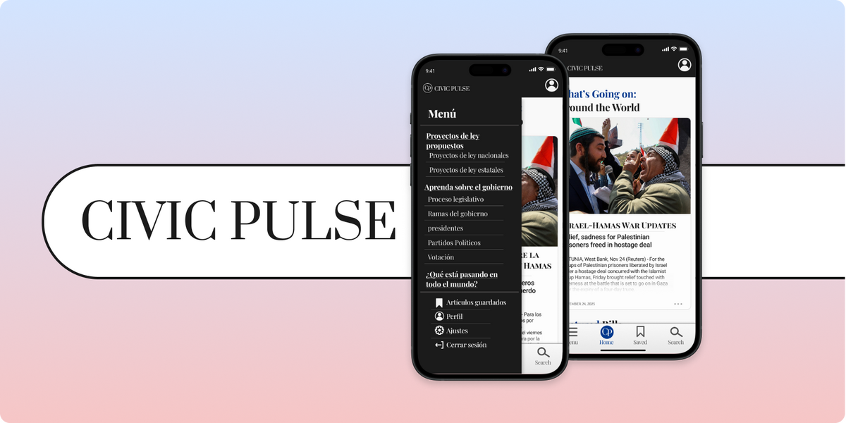 Homepage of Civic Pulse in English and the Menu in Spanish
