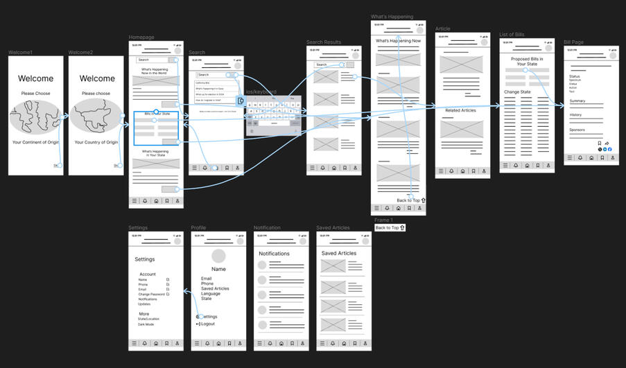 The problem? Users had no easy way to access proposed and recently passed bills in their state and Nation. Other websites had the information but was hard to navigate and understand. I needed to make an app that not only makes the journey easy but also gives the users language options. Not only will english speaking and reading users will be using this app, but users that are new to the States, or users' who's parents are immigrants and may not know the language well.